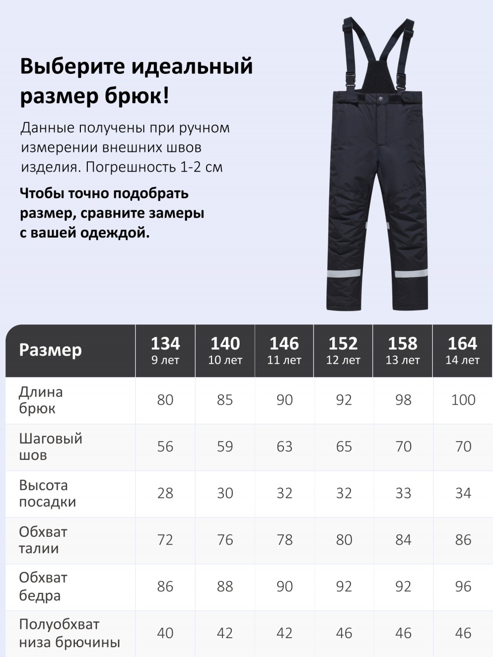 Размер Длина брюк Шаговый шов Высота посадки Обхват талии Обхват бедра Полуобхват низа брючины