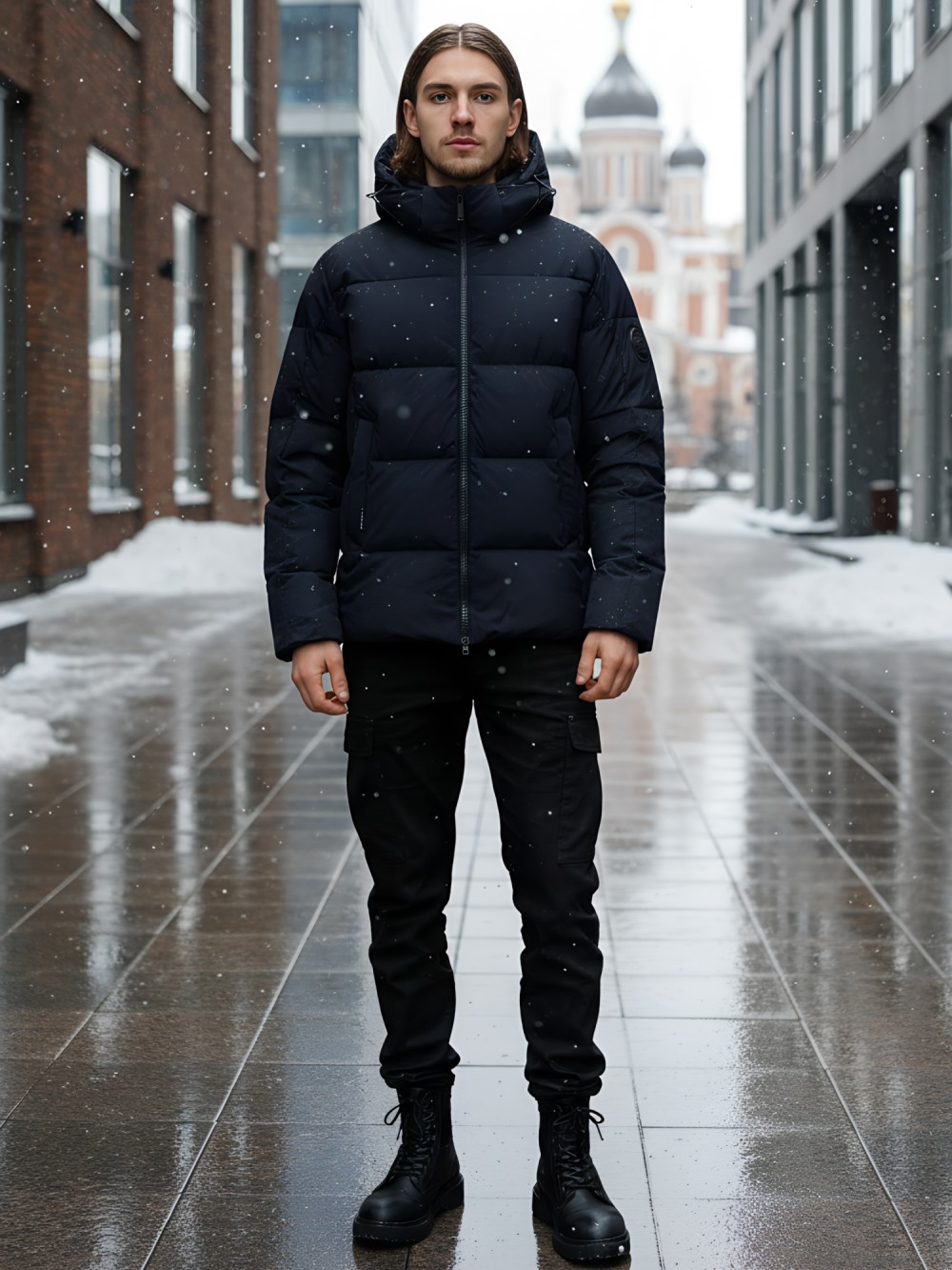 Куртка зимняя мужская УЦЕНКА темно-синего цвета 0939TS