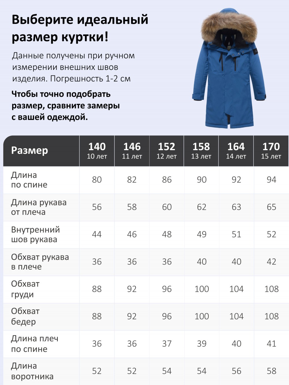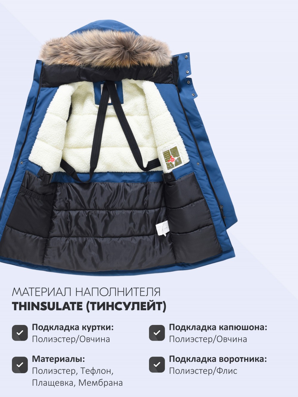 Зимняя парка для мальчика-подростка с натуральным мехом енота создана для надёжной защиты в холодное время года. Плотная износостойкая ткань с водоотталкивающими свойствами и проклеенные швы защищают от ветра и влаги, сохраняя тепло даже в условиях мокрого снега и сильного ветра. Утеплитель тинсулейт с плотностью 285 г/м² поддерживает комфортную температуру внутри и не утяжеляет модель, что позволяет носить парку каждый день в диапазоне от +5 до –25 градусов.