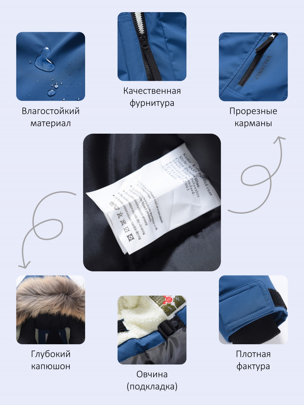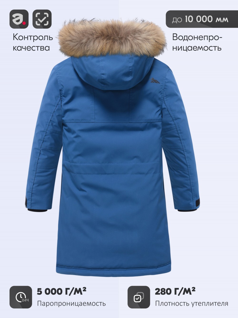 Светоотражающие детали и логотип со светоэффектом повышают безопасность ребёнка в тёмное время суток. Парка выполнена в универсальных цветах — синем, голубом и чёрном — и подойдёт как для школы, так и для повседневных прогулок.